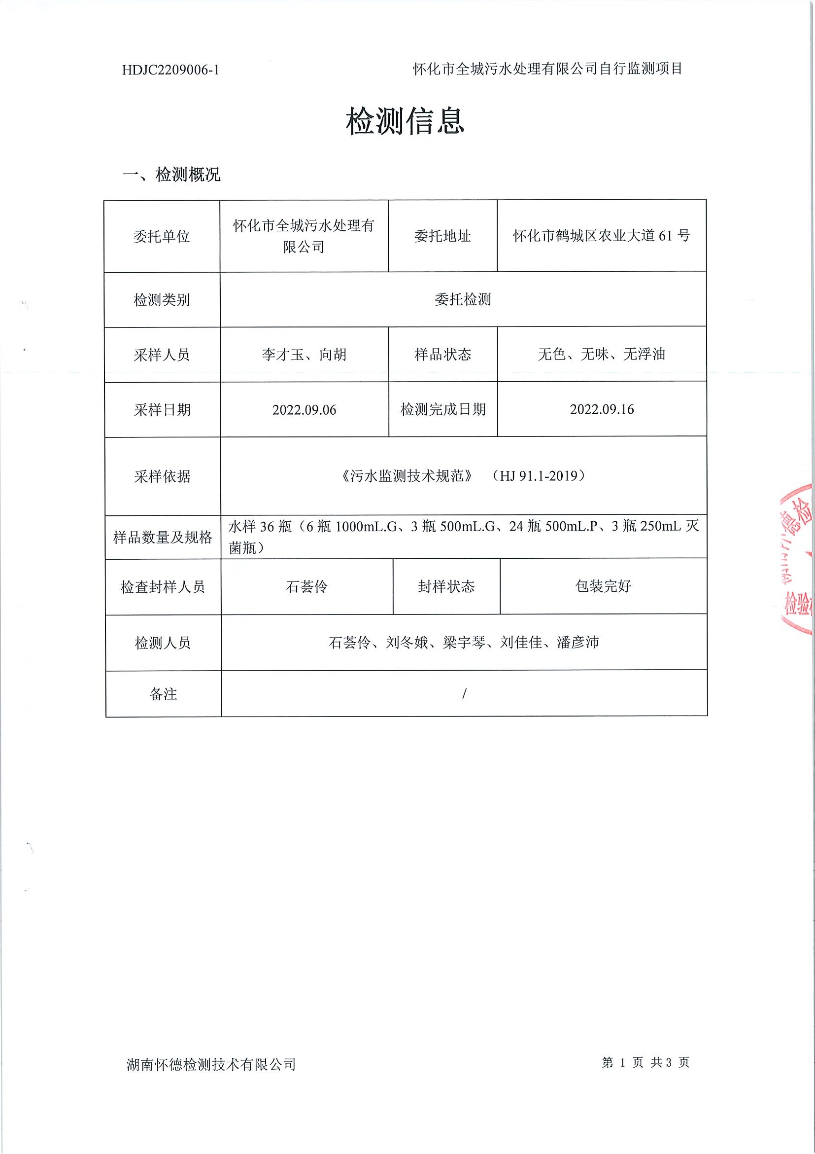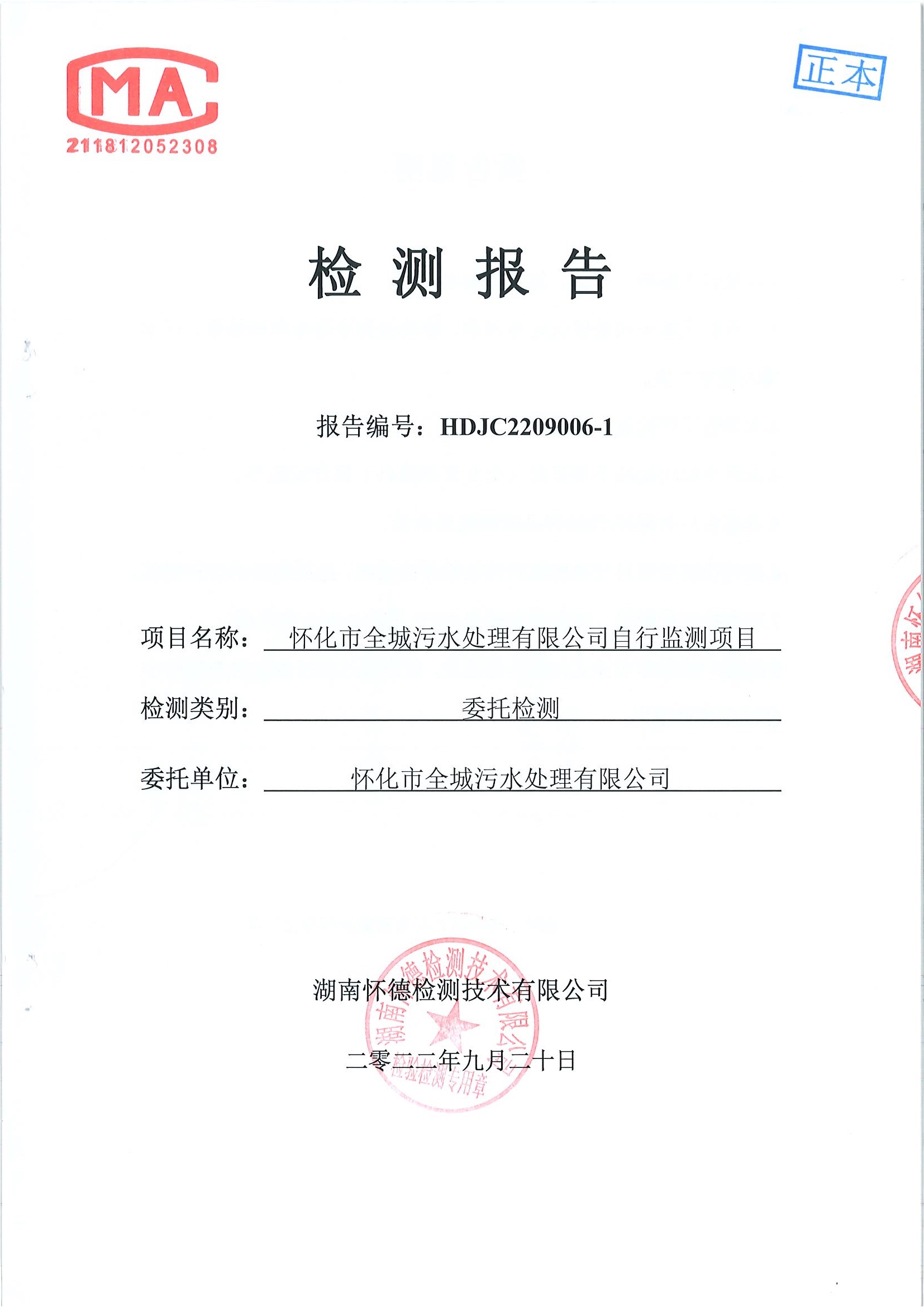 怀德检测 2022年9月 污水检测报告